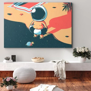 Die Leinwand wird über den Rahmen gespannt. Die Seiten und Kanten werden gedruckt, um das Bild fortzusetzen. Das Bild ist fertig zum Aufhängen an der Wand. Jedes Produkt hat einen am Rahmen befestigten Anhänger und ein Montageset (Schraube + Stift).
