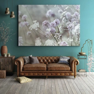Bild auf Leinwand - Leinwandbild - Zarte Blüten in Pastelltönen - 50x70cm - Süße filigrane Kräuter - Moderne Wanddekoration für Wohnzimmer und Schlafzimmer ARTTOR