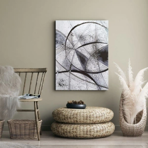 Die Leinwand wird über den Rahmen gespannt. Die Seiten und Kanten werden gedruckt, um das Bild fortzusetzen. Das Bild ist fertig zum Aufhängen an der Wand. Jedes Produkt hat einen am Rahmen befestigten Anhänger und ein Montageset (Schraube + Stift).