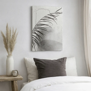 Bild auf Leinwand - Leinwandbild - Ein zartes Palmblattmotiv auf hellem Untergrund im skandinavischen Stil. - 100x70cm - Subtile Exotik der Natur - Moderne Wanddekoration für Wohnzimmer und Schlafzimmer ARTTOR