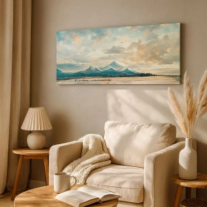 Bild auf Leinwand - Leinwandbild - Eine malerische Landschaft mit einem Berg und einem ruhigen See - 100x70cm - Unter dem Schutz des Himmels - Moderne Wanddekoration für Wohnzimmer und Schlafzimmer ARTTOR