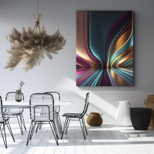Die Leinwand wird über den Rahmen gespannt. Die Seiten und Kanten werden gedruckt, um das Bild fortzusetzen. Das Bild ist fertig zum Aufhängen an der Wand. Jedes Produkt hat einen am Rahmen befestigten Anhänger und ein Montageset (Schraube + Stift).