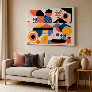 Bild auf Leinwand - Leinwandbild - Bunte geometrische Formen im Retro-Stil - 80x120cm - Komposition: Na, los, spiel! - Moderne Wanddekoration für Wohnzimmer und Schlafzimmer ARTTOR