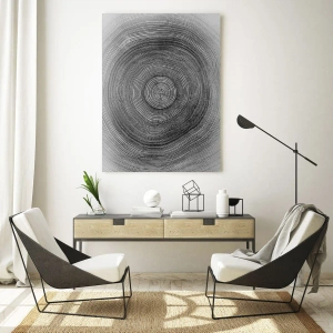 Glasbild - Bild auf glas - Schwarz-weißes Baumringmuster, das einen Querschnitt des Stammes zeigt - 70x100cm - Zeichen der Zeit - Moderne Wanddekoration für Wohnzimmer und Schlafzimmer ARTTOR