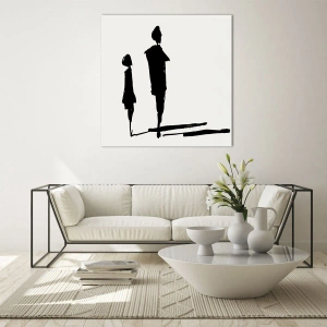 Glasbild - Bild auf glas - Schwarze Silhouetten zweier Figuren mit Schatten auf hellem Hintergrund - 70x50cm - Mit Sicherheit zusammen? - Moderne Wanddekoration für Wohnzimmer und Schlafzimmer ARTTOR