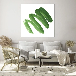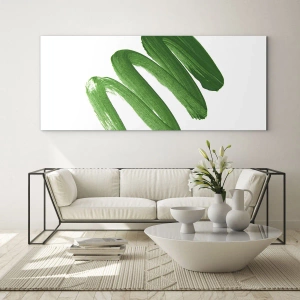 Glasbild - Bild auf glas - Grüner abstrakter Pinselstrich auf weißem Hintergrund - 70x100cm - Grüner Witz - Moderne Wanddekoration für Wohnzimmer und Schlafzimmer ARTTOR