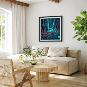 Poster in einem schwarzem Rahmen - Eine futuristische Vision eines integrierten Schaltkreises - 50x70cm - Ich denke nur… - Moderne Wanddekoration für Wohnzimmer und Schlafzimmer ARTTOR