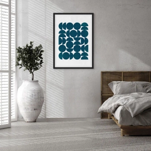 Poster in einem schwarzem Rahmen - Geometrische Formen in Marineblautönen auf weißem Hintergrund - 70x50cm - Kreise und Halbkreise - Moderne Wanddekoration für Wohnzimmer und Schlafzimmer ARTTOR