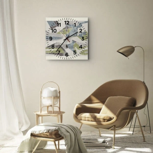 Wanduhr - Glasuhr - Abstrakte Formen in Grün und Blau auf hellem Hintergrund - 30x30cm - Komposition hinter dem Glas - Moderne Wanddekoration für Wohnzimmer und Schlafzimmer ARTTOR