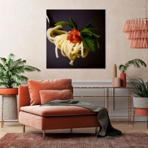 „Leckerer Happen“ ist ein einzigartiger Leinwanddruck, der elegant auf einer Gabel servierte Spaghetti mit Tomatensoße und Petersilie zeigt. Er passt perfekt in Küchen und Esszimmer und verleiht Innenräumen einen appetitlichen und stilvollen kulinarischen Akzent.