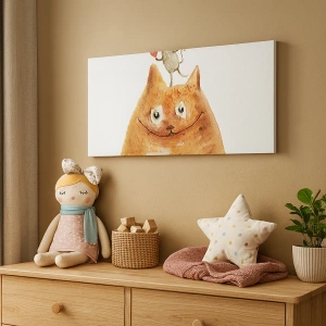 Das Leinwandbild „Paradoxe der Liebe“ zeigt eine charmante und humorvolle Szene, in der eine Maus auf dem Kopf einer Katze steht und ein rotes Herz in ihren Pfoten hält. Dieses in zarter Aquarelltechnik gemalte Motiv vermittelt sowohl die Wärme als auch den spielerischen Kontrast zwischen den natürlichen Antagonisten, die in dieser Komposition durch ein Gefühl der Freundschaft vereint sind.