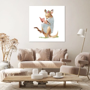 Bild auf Leinwand - Leinwandbild - Kanga liest mit einem Baby ein Buch - 120x80cm - Lies mir vor Mama - Moderne Wanddekoration für Wohnzimmer und Schlafzimmer ARTTOR