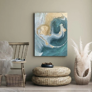 Bild auf Leinwand - Leinwandbild - Ein Strudel aus Gold und Türkis - 100x40 cm