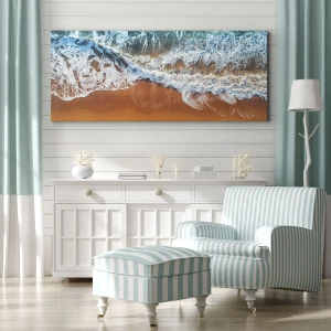 Die Leinwand wird über den Rahmen gespannt. Die Seiten und Kanten werden gedruckt, um das Bild fortzusetzen. Das Bild ist fertig zum Aufhängen an der Wand. Jedes Produkt hat einen am Rahmen befestigten Anhänger und ein Montageset (Schraube + Stift).