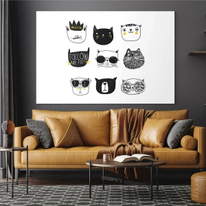 Die in den Illustrationen abgebildeten Katzen ziehen durch ihre Vielfalt und ihr verspieltes Aussehen die Aufmerksamkeit auf sich und machen das Gemälde zu einer großartigen Ergänzung für Tierliebhaber und alle, die eine einzigartige Einrichtung lieben. Humorvolle Aufschriften wie „Follow My Feet“ und „You Are Super Cat“ verleihen dem Gemälde zusätzlichen Charme und visuelle Interaktion und machen es einzigartig.