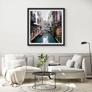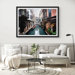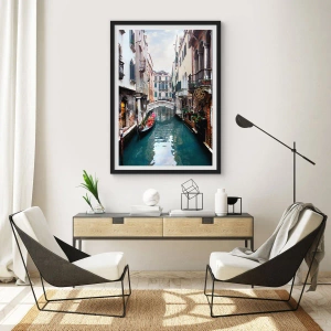 Dieses Poster ist die perfekte Wahl für Menschen, die gerne reisen und stilvolle Dekoration mögen. Eine Gondel auf dem ruhigen Wasser des Kanals erinnert an besondere Momente in Venedig, während die Schönheit der umliegenden Gebäude und der Brücke dem Gesamtbild Klasse und Eleganz verleiht.