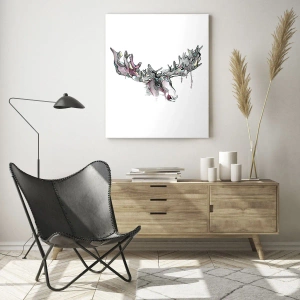 Glasbild - Bild auf glas - Buntes Aquarell eines Elches mit ausgedehntem Geweih - 50x70cm - Krone des Waldkönigs - Moderne Wanddekoration für Wohnzimmer und Schlafzimmer ARTTOR