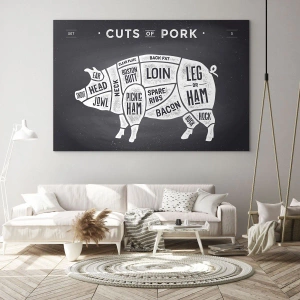 Glasbild - Bild auf glas - Diagramm von Schweinefleischstücken auf einer schwarzen Tafel - 50x70cm - Metzger Grundierung - Moderne Wanddekoration für Wohnzimmer und Schlafzimmer ARTTOR