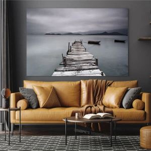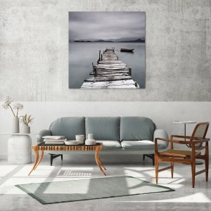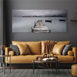 Glasbild - Bild auf glas - Ein Holzsteg auf einem See an einem nebligen Tag - 50x70cm - Du kannst morgen gehen - Moderne Wanddekoration für Wohnzimmer und Schlafzimmer ARTTOR