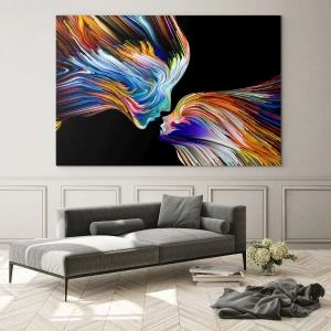 Glasbild - Bild auf glas - Ein abstraktes Bild zweier Gesichter mit einer Verschmelzung von Energie und Licht. - 50x70cm - Eine Verschmelzung von Energie und Licht - Moderne Wanddekoration für Wohnzimmer und Schlafzimmer ARTTOR