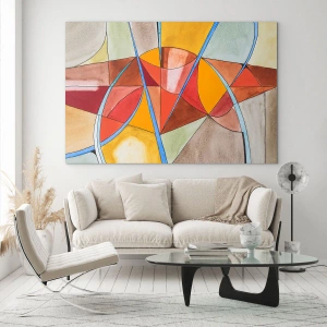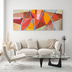 Dieses kunstvolle Gemälde passt perfekt zur Ästhetik moderner Innenräume. Geometrische Formen verleihen dem Raum einen einzigartigen Stil, der das Auge anzieht und inspiriert. Die Glasoberfläche bringt die Farbtiefe zur Geltung und verstärkt den visuellen Effekt.
