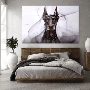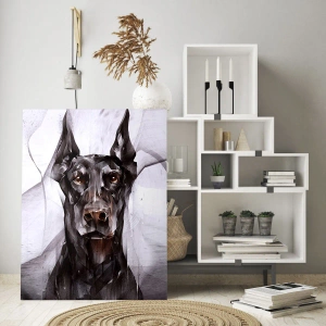 Das abstrakte Hundemotiv passt perfekt zu minimalistischen, modernen oder industriellen Interieurs. Das Gemälde eignet sich ideal für ein Wohnzimmer, Schlafzimmer oder Büro, wo es zum dekorativen Blickfang wird und die Individualität des Raumes unterstreicht.