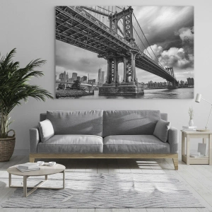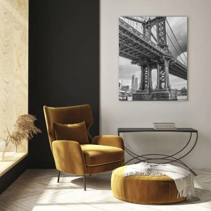Glasbild - Bild auf glas - Eine Hängebrücke in monochromer Umgebung - 50x70cm - Ins Herz der Stadt - Moderne Wanddekoration für Wohnzimmer und Schlafzimmer ARTTOR