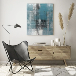 Glasbild - Bild auf glas - Abstraktion in Blau- und Grautönen mit geometrischen Formen - 70x50cm - Wasser und Luft - Moderne Wanddekoration für Wohnzimmer und Schlafzimmer ARTTOR