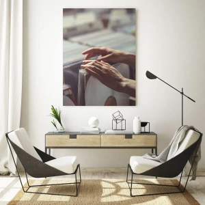 Das Gemälde „Auf der Suche nach Emotionen“ ist eine Hommage an die Musikkultur vergangener Jahre, als das Hören von Musik auf Schallplatten ein Ritual voller Emotionen war. Schallplattensammeln ist nicht nur ein Hobby, sondern auch eine Möglichkeit, die Vergangenheit zu entdecken und sich der Musik auf persönliche und leidenschaftliche Weise zu widmen. Die Hände, die die Platten berühren, zeigen, wie tief wir mit der Musik verbunden sind, wie sehr wir uns ihren Rhythmen und Klängen hingeben können.
