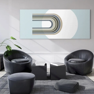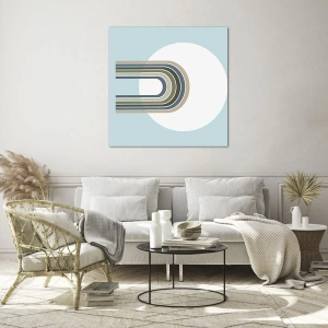 Glasbild - Bild auf glas - Eine minimalistische Komposition mit einem Kreis und Linien auf pastellfarbenem Hintergrund. - 70x100cm - Unwiderstehliche Anziehungskraft - Moderne Wanddekoration für Wohnzimmer und Schlafzimmer ARTTOR