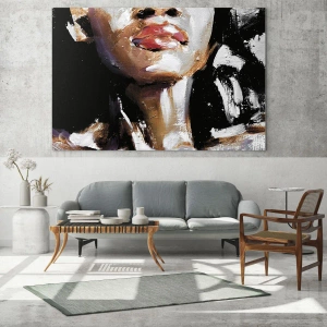 • Ein dynamisches Frauenporträt, in Nahaufnahme und mit einem ausgeprägten, ausdrucksstarken Malstil. Intensive Farben und dicke Pinselstriche schaffen eine Komposition voller Emotionen und Charakter. Eine ideale Dekoration für moderne Innenräume.