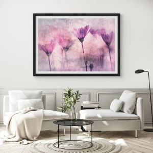 Poster in einem schwarzem Rahmen - Zarte Blüten in Lilatönen auf hellem Untergrund - 70x50cm - Ein Blumentraum - Moderne Wanddekoration für Wohnzimmer und Schlafzimmer ARTTOR