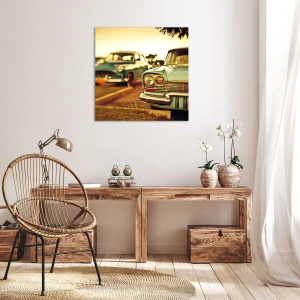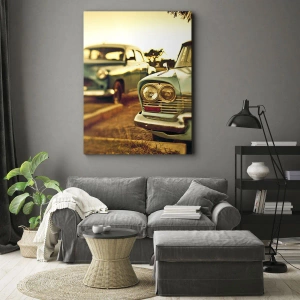 Das Gemälde „Klassische Autos im warmen Licht des Sonnenuntergangs“ ist auch eine perfekte Geschenkidee für Fans von Autos und Retro-Stil. Sein Motiv und die dezenten Farben machen es zu einer Vielzahl von Einrichtungsstilen und verleihen ihnen Eleganz und Charakter.