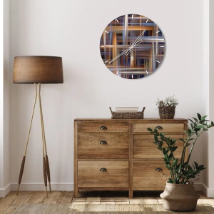 Wanduhr – Woven of Light – Gittermuster in Braun- und Blautönen