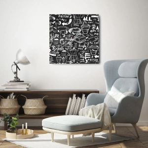 Wanduhr - Glasuhr - Kaffeemotiv im Stil einer Kreidezeichnung auf schwarzem Hintergrund - 30x30cm - Alles was Sie brauchen ist… - Moderne Wanddekoration für Wohnzimmer, Küche und Schlafzimmer ARTTOR