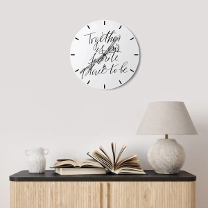Die Uhr besteht aus 4 mm dickem Sicherheitsglas Glas. Die Herstellungstechnologie der Uhr entspricht der Sicherheitsklasse 2B2 gemäß der Norm PN-EN 12600: 2004, die Stoßfestigkeit garantiert. Die Uhr auf dem Glas ist bereit zu hängen - es hat einen Metallanhänger, einen Anhänger auf der Rückseite der Uhr und einen Schaumstoffabstand, der einen gleichmäßigen Abstand zwischen der Uhr und der Wand reguliert. Die Uhr hat einen geräuschlosen Schwimmmechanismus, der von einer 1,5-V-Batterie betrieben wird - AA-Batterie inbegriffen).