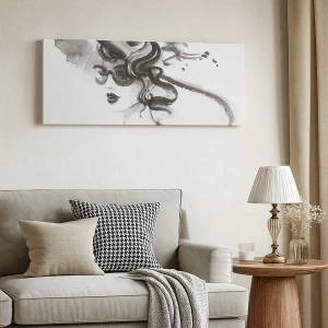 Bild auf Leinwand - Leinwandbild - Elegante Frau mit Hut im Schwarz-Weiß-Stil - 50x70cm - Eine Dame mit Charakter - Moderne Wanddekoration für Wohnzimmer und Schlafzimmer ARTTOR