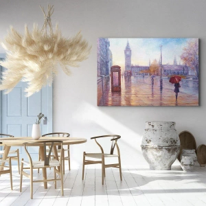Bild auf Leinwand - Leinwandbild - Londoner Straße mit Big Ben an einem regnerischen Tag - 50x70cm - Londoner Herbsttag - Moderne Wanddekoration für Wohnzimmer und Schlafzimmer ARTTOR