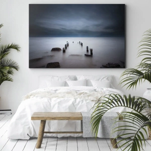 Bild auf Leinwand - Leinwandbild - Der alte Pier vor der Kulisse eines ruhigen Meeres - 50x70cm - Nachdenklicher See - Moderne Wanddekoration für Wohnzimmer und Schlafzimmer ARTTOR
