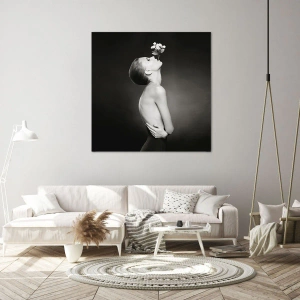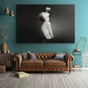 Bild auf Leinwand - Leinwandbild - Schwarz-weiße Silhouette einer Frau mit einer Blume - 50x70cm - Exzentrische Eleganz - Moderne Wanddekoration für Wohnzimmer und Schlafzimmer ARTTOR