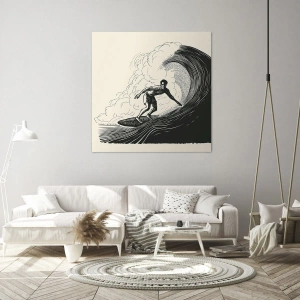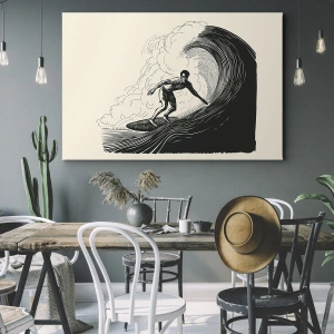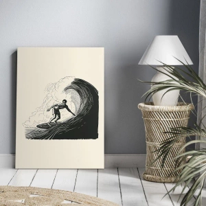 Bild auf Leinwand - Leinwandbild - Schwarz-Weiß-Grafik eines Surfers, der auf einer Welle reitet - 50x70cm - König der Welle - Moderne Wanddekoration für Wohnzimmer und Schlafzimmer ARTTOR