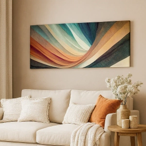 Bild auf Leinwand - Leinwandbild - Abstrakte Wellen in warmen und kühlen Farbtönen - 50x70cm - Aus Farben gewebt - Moderne Wanddekoration für Wohnzimmer und Schlafzimmer ARTTOR