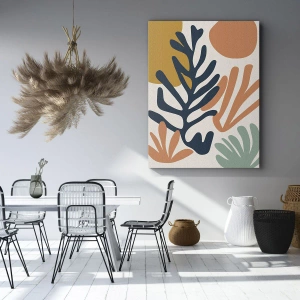 Die Leinwand wird über den Rahmen gespannt. Die Seiten und Kanten werden gedruckt, um das Bild fortzusetzen. Das Bild ist fertig zum Aufhängen an der Wand. Jedes Produkt hat einen am Rahmen befestigten Anhänger und ein Montageset (Schraube + Stift).