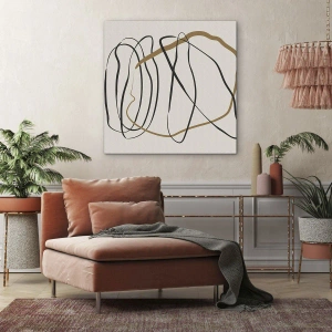 Bild auf Leinwand - Leinwandbild - Künstlerische Linien in Schwarz und Gold auf hellem Hintergrund - 140x50cm - Komposition – Looptanz - Moderne Wanddekoration für Wohnzimmer und Schlafzimmer ARTTOR