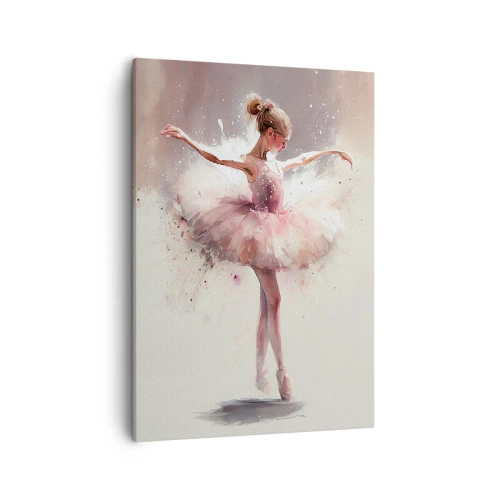 Die Leinwand wird über den Rahmen gespannt. Die Seiten und Kanten werden gedruckt, um das Bild fortzusetzen. Das Bild ist fertig zum Aufhängen an der Wand. Jedes Produkt hat einen am Rahmen befestigten Anhänger und ein Montageset (Schraube + Stift).