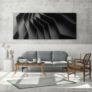Glasbild - Bild auf glas - Schwarze geometrische Formen mit Tiefe und Helldunkel - 50x70cm - Räumliche Ordnung - Moderne Wanddekoration für Wohnzimmer und Schlafzimmer ARTTOR