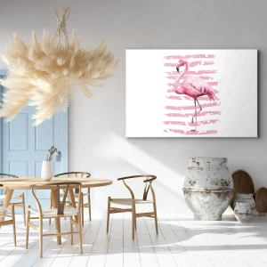 Bild auf Leinwand - Leinwandbild - Flamingo auf rosa Hintergrund im minimalistischen Stil - 70x50cm - In Würde, aber in Pink - Moderne Wanddekoration für Wohnzimmer und Schlafzimmer ARTTOR