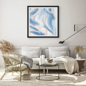 Poster in einem schwarzem Rahmen - Abstrakte Welle in Blau- und Beigetönen - 50x70cm - Blaue Wellen - Moderne Wanddekoration für Wohnzimmer und Schlafzimmer ARTTOR