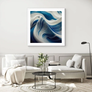 Poster in einem weißen Rahmen - Fließfähigkeit von Blau und Weiß - 61x91 cm