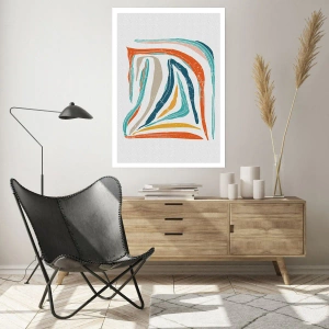 Poster - Bunte, dynamische Linien in Blau-, Orange- und Beigetönen - 100x70cm - Abstraktion mit einem freundlichen Lächeln - Moderne Wanddekoration für Wohnzimmer und Schlafzimmer ARTTOR